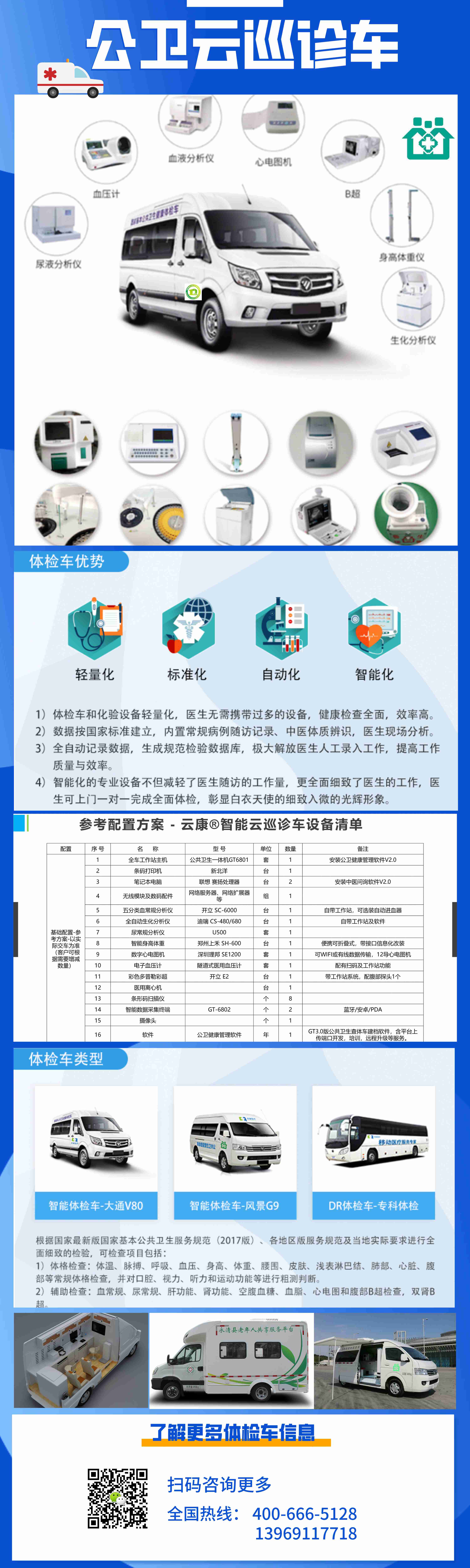 智能云巡診車 | 云康 | 1輛 | 藍牌C本醫療體檢車輛,全車專業改裝; | |